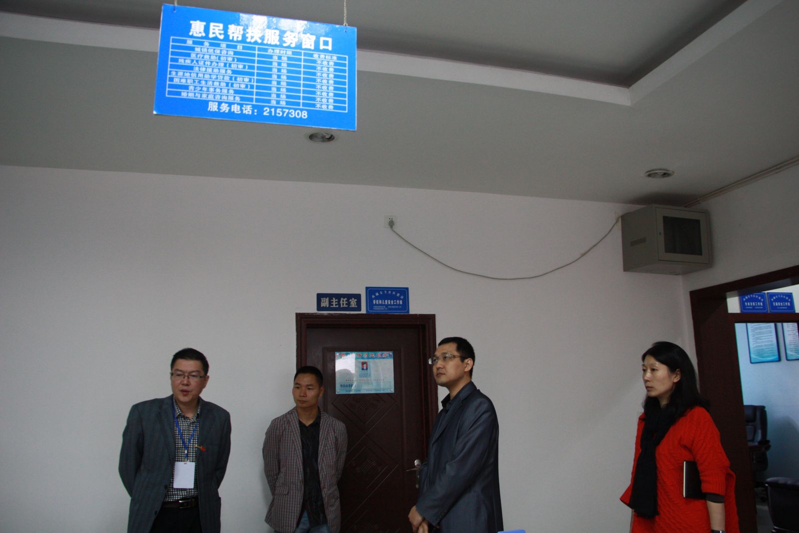 (调研组在西城街道办事处惠民帮扶站查看窗口运行情况)