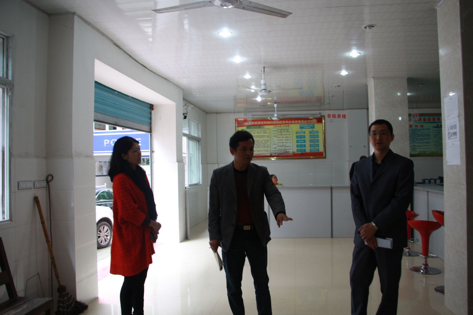 (调研组在碑庙镇惠民帮扶站听取负责人作情况汇报)