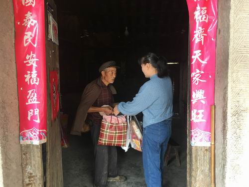 今年10月17日是全国第5个“扶贫日”,当天,市惠民帮扶中心主任肖成丽带领全体干部职工到帮扶联系村─开江县永兴镇何家垭口村看望慰问11户贫困群众,中心职工为自己结对帮扶户自费送去牛奶、食用油和御寒衣物等生活日用品共计千余元。走访中,中心工作人员逐户走进结对帮扶对象家中,关心他们身体生活、子女务工以及孩子就学等情况,了解家庭种养殖业等经济状况和下步打算规划,并为他们送去相关惠民政策和建议。同时鼓励全村群众继续坚定信心,加强专业劳动技能学习,借用现代科技信息,打造农村产业和特色,努力增收致富,早日脱贫奔康。